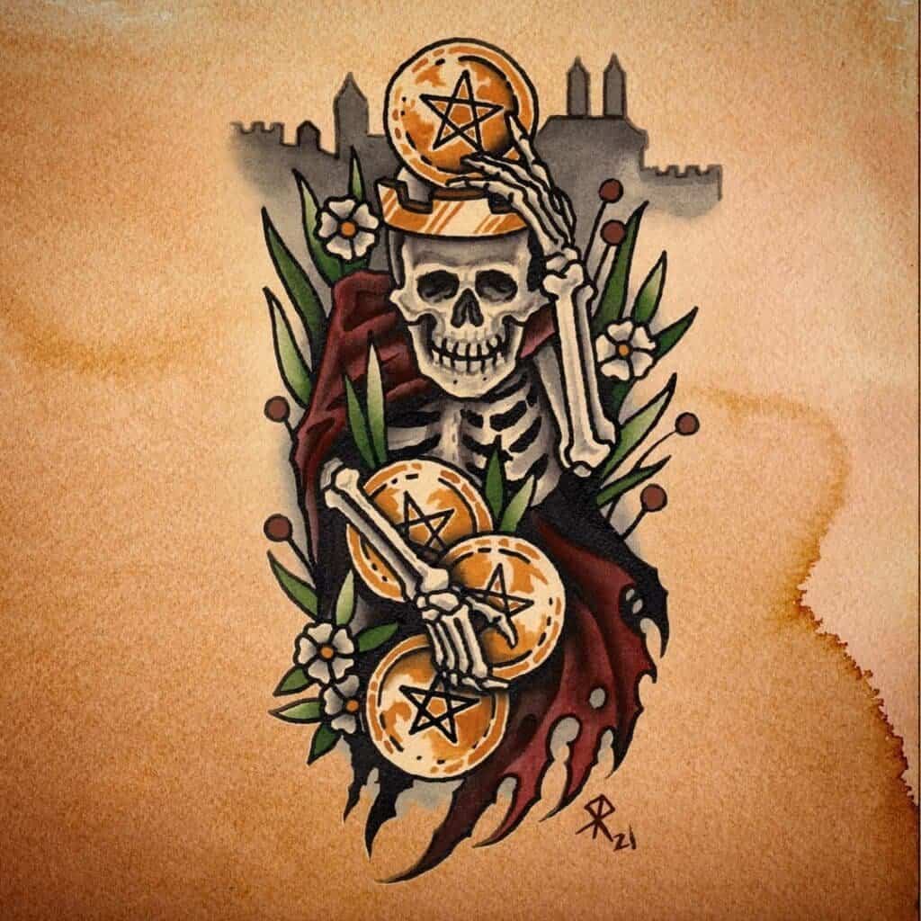 While Robert may resist labeling himself, his work continues to sharpen into something unmistakably his own: traditional tattooing infused with fantasy, grit, and visual intensity.
