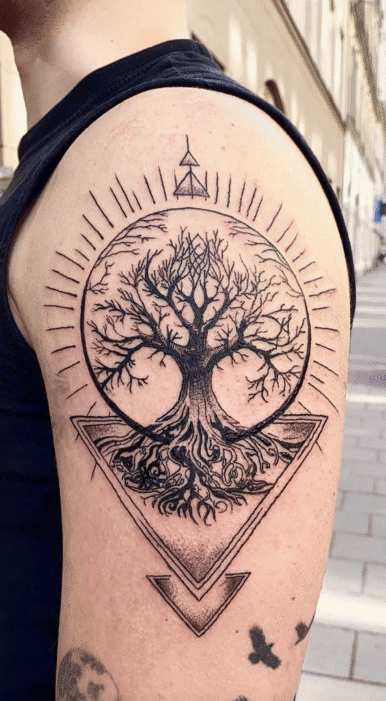 At the heart of Norse cosmology stands Yggdrasil, the great ash tree connecting all realms of existence. A tattoo of Yggdrasil symbolises life, interconnection, and destiny.