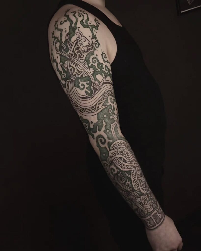 These designs were believed to embody strength, fate, courage, and devotion to the gods. Norse tattoos commonly featured runes, mythical beasts, and sacred symbols tied to deities like Odin and Thor.
