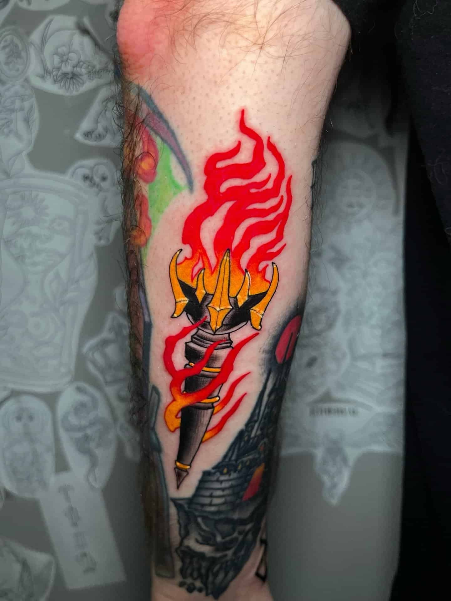 - Thighs and calves suit symmetrical compositions like daggers or owls.